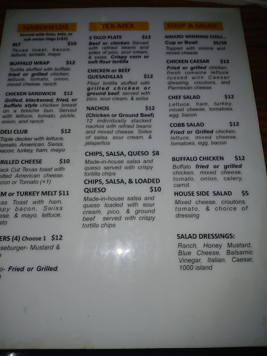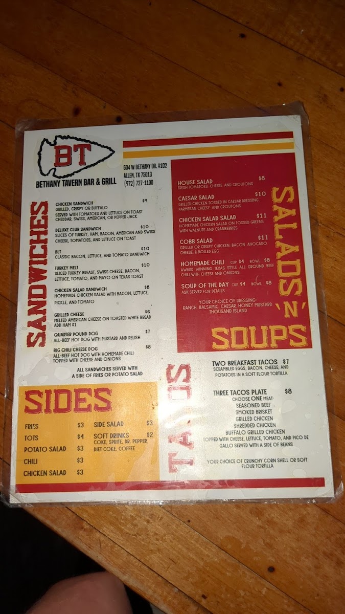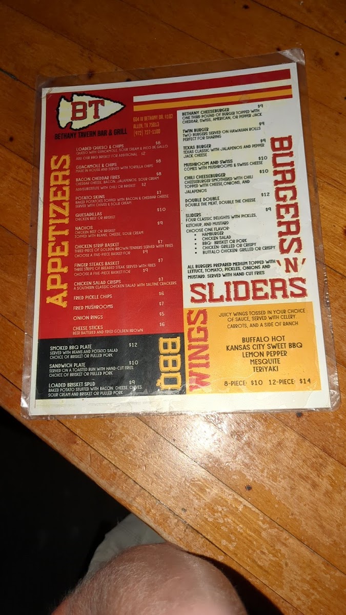 The Bethany Tavern offers a straightforward and inviting menu that perfectly complements its relaxed, neighborhood bar atmosphere. Whether you’re stopping by for casual bites paired with a cold Shiner Bock or settling in to enjoy live music or a game, the menu balances classic American bar favorites with comforting, familiar flavors.
